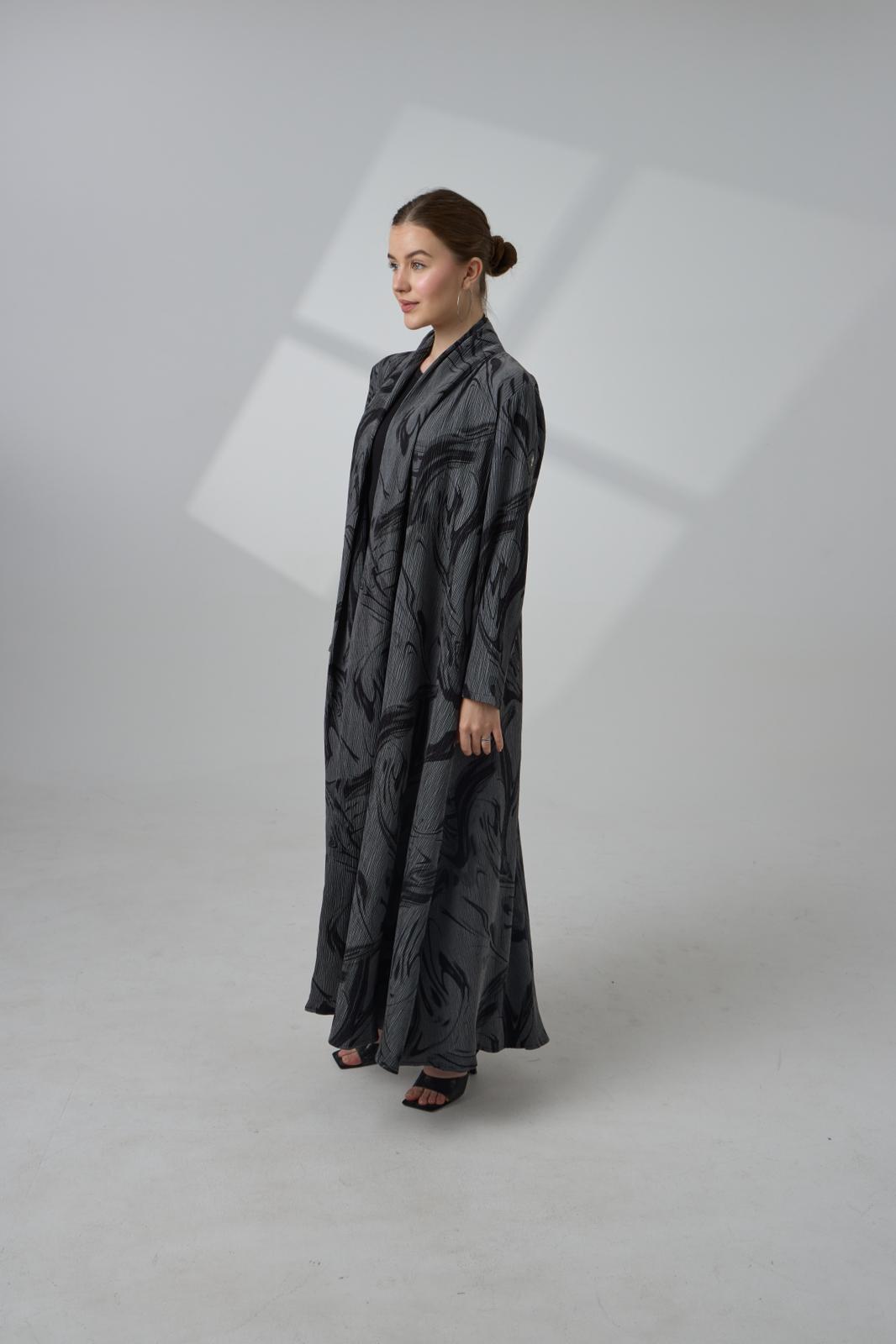 عبايه بقماش الجاكارد مكسر ✨القماش ترندي هالفتره ، تتميز بنعومتها وجمالها ، ونقشه مموجه من اللون الابيض والاسود / الشكل الثاني نقشه مموجه مع تداخل الوان الكحلي والبيج والرصاصي مع الابيض 👌…