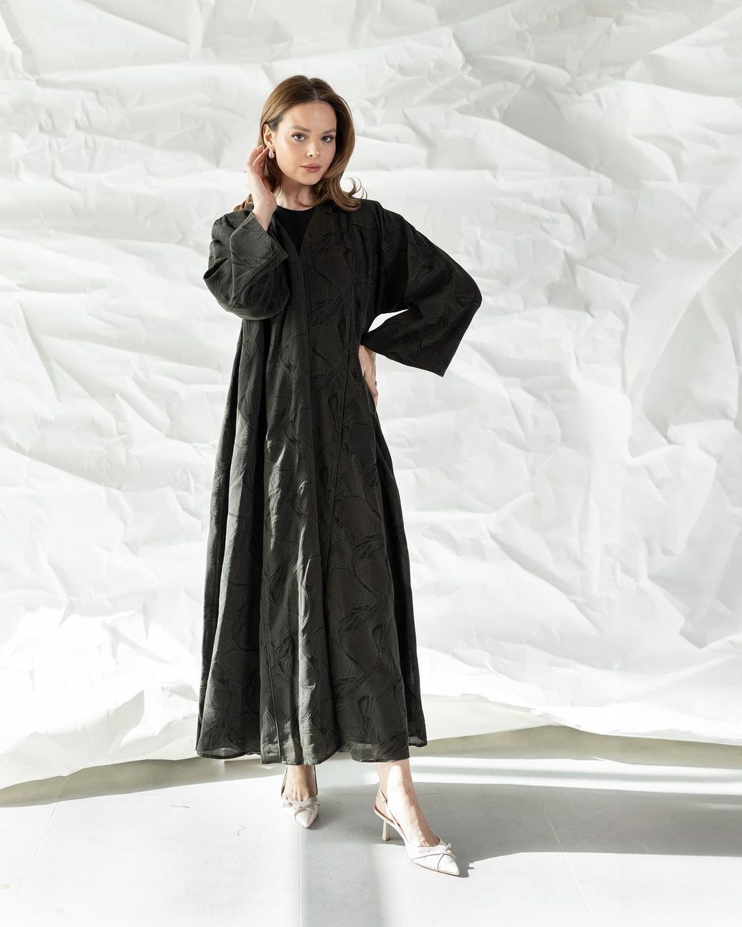 عبايه صُممت بقماش لينن جاكارد ، قصه العبايه a cut ✨ , القماش صيفي تتوفر باللونين الزيتي الغامج \ البني ..