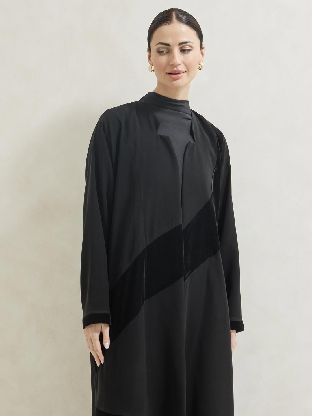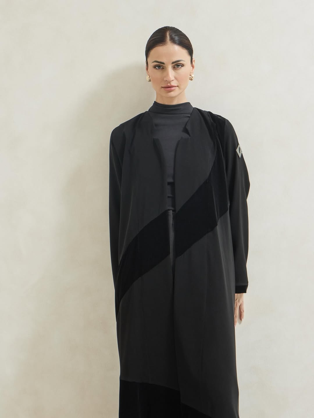 عبايه بقماش شتوي ( مخمل كوري درجه اولى ) ، مع كل كولكشن احرصَ دائما على التنوع في قصات العبايه ( اعتمدت قصهَ البشت مع تصميم الطبقات في اليد 💫✨) ممكن تغير قَصه العبايه حسب الطلب