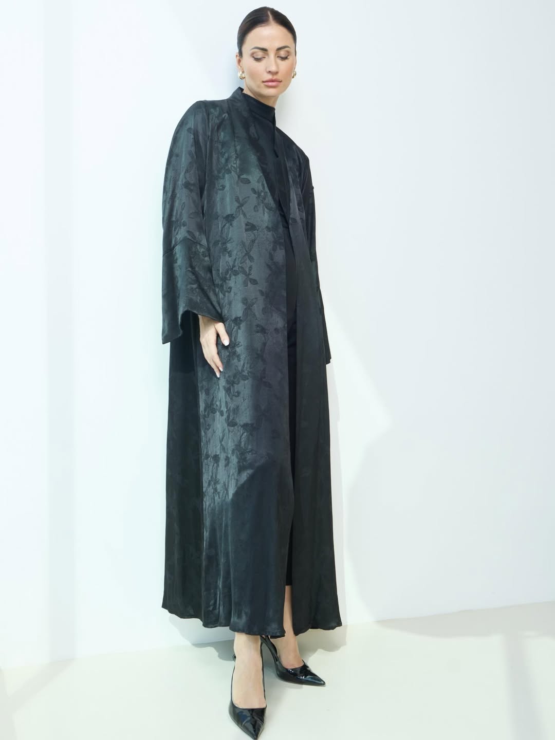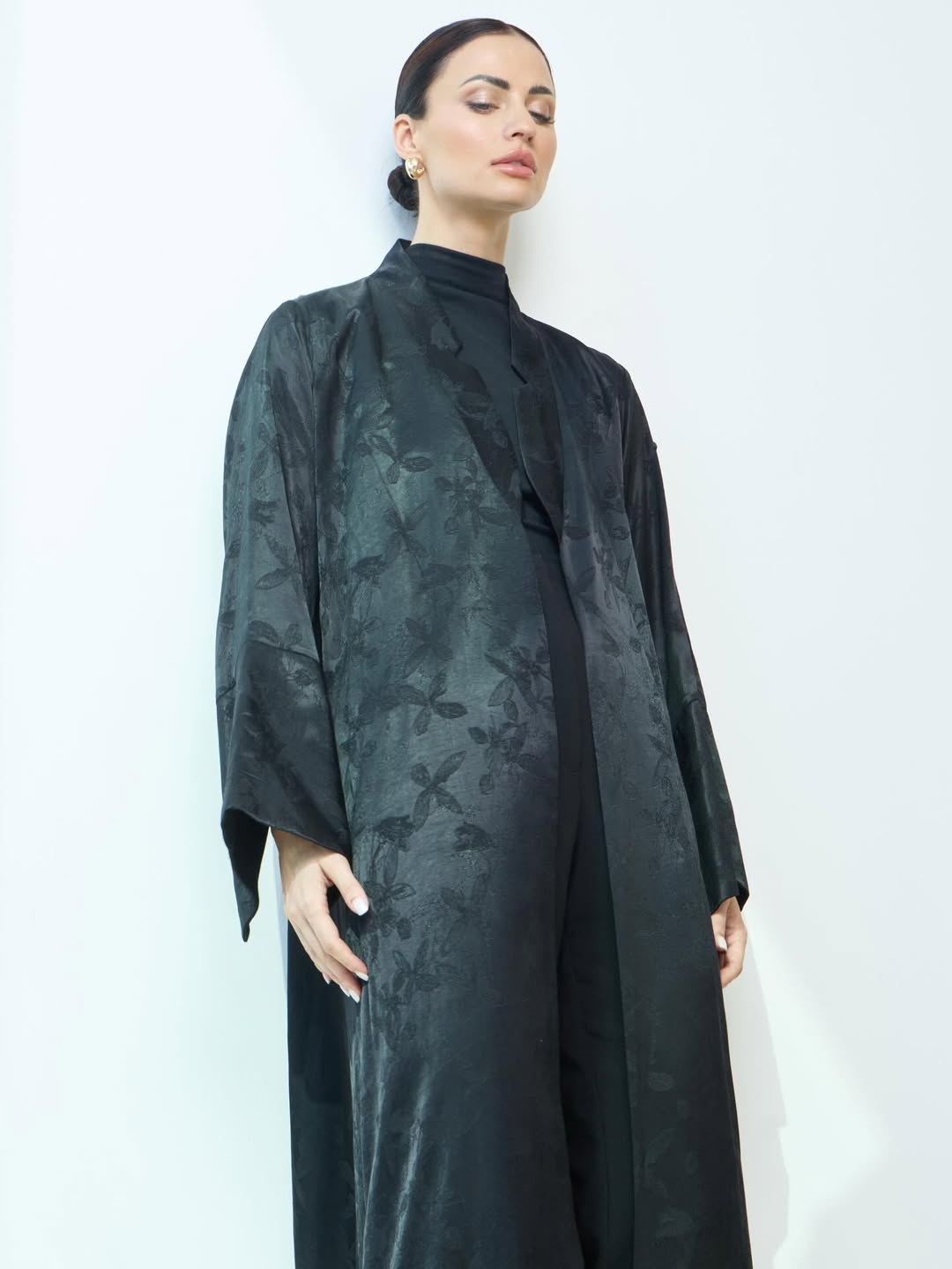 عبايه بقماش الجاكارد الياباني ، مع اضافه ياقه مميزه ، القماش انسيابي ومميز ❣️