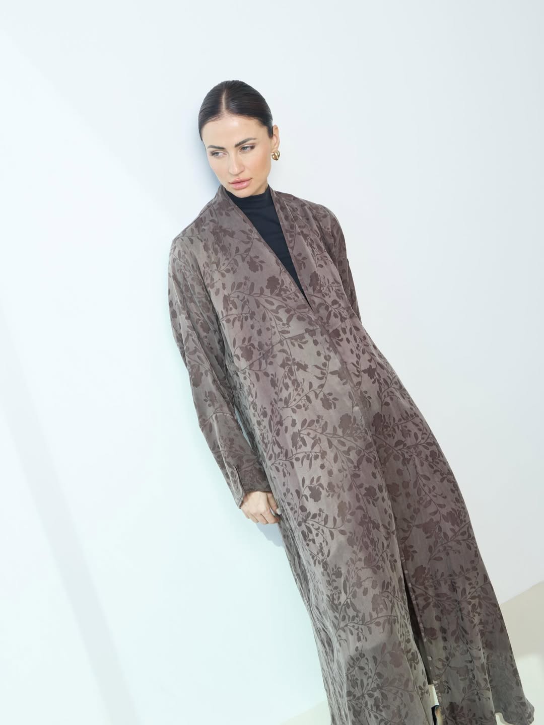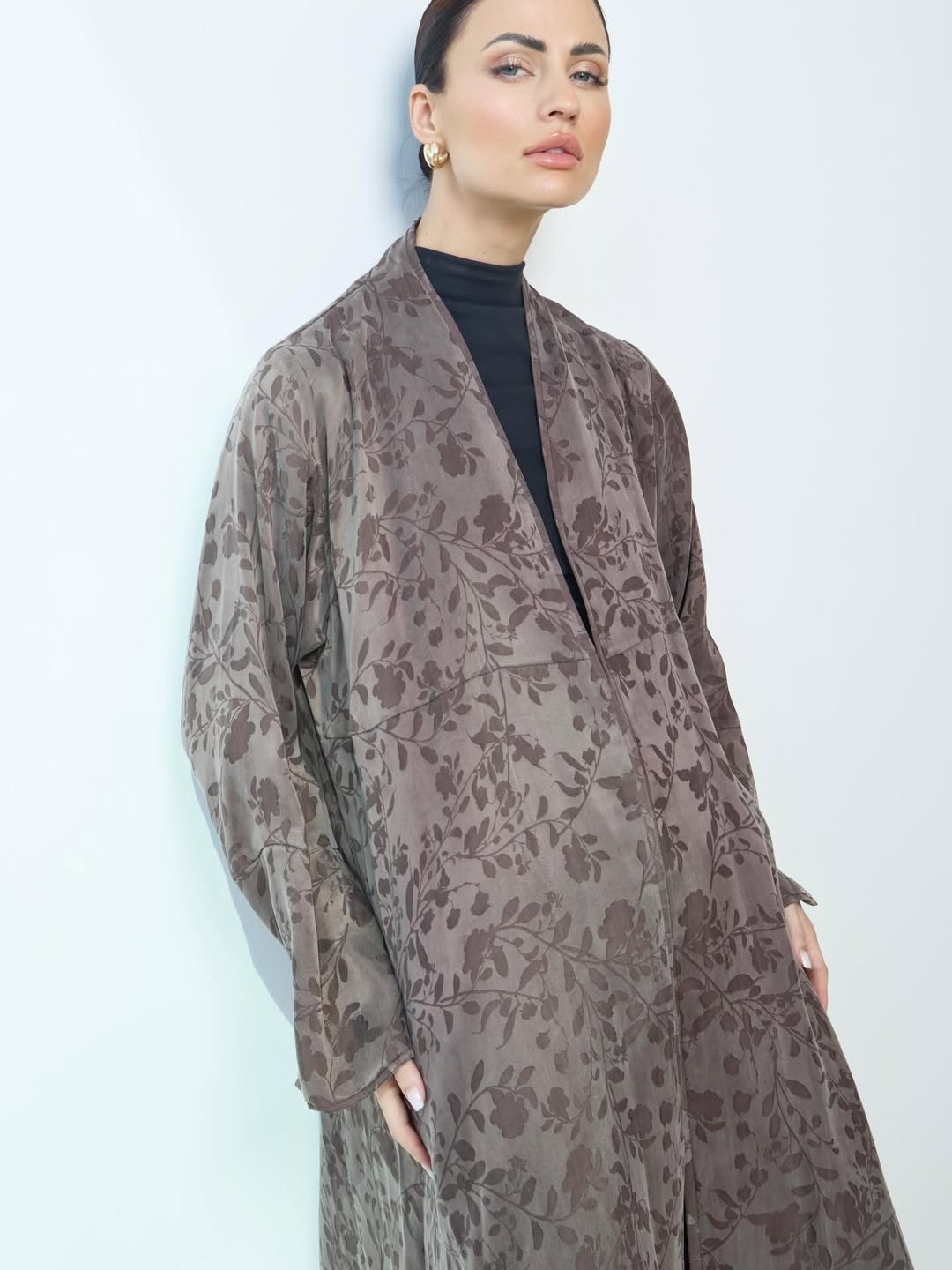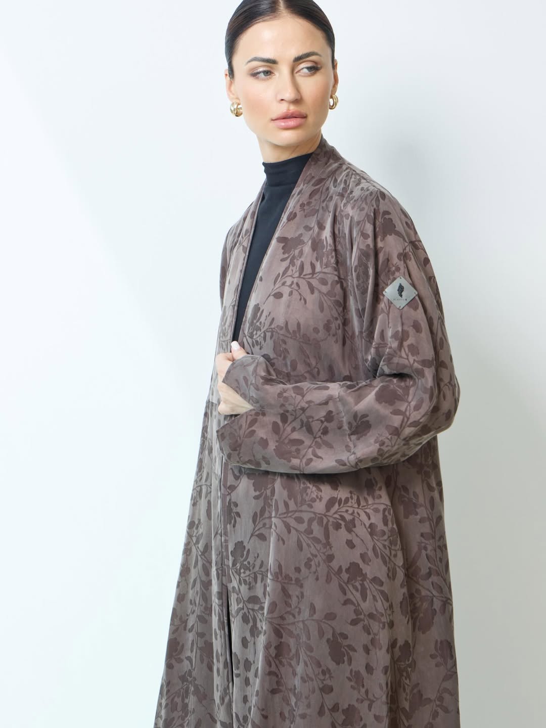 عبايه بقماش الحرير التركي ، بطبعه جميله مع اضافه قصَه لاعطاء العبايه اكث جماليه ، تتوفر باللون البني / البيج / الاسود