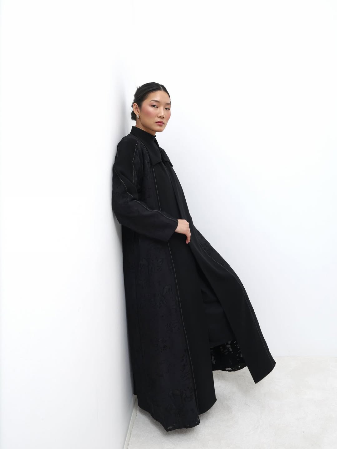 عبايه صممت بقماش الدانتيل مع قماشنا المعتمد / العبايه تعكس ذوقنا الخاص مع لمسات خيوط الزري والكلوش ، تتوفر باللون الاسود والكحلي فقط 🪡🪄