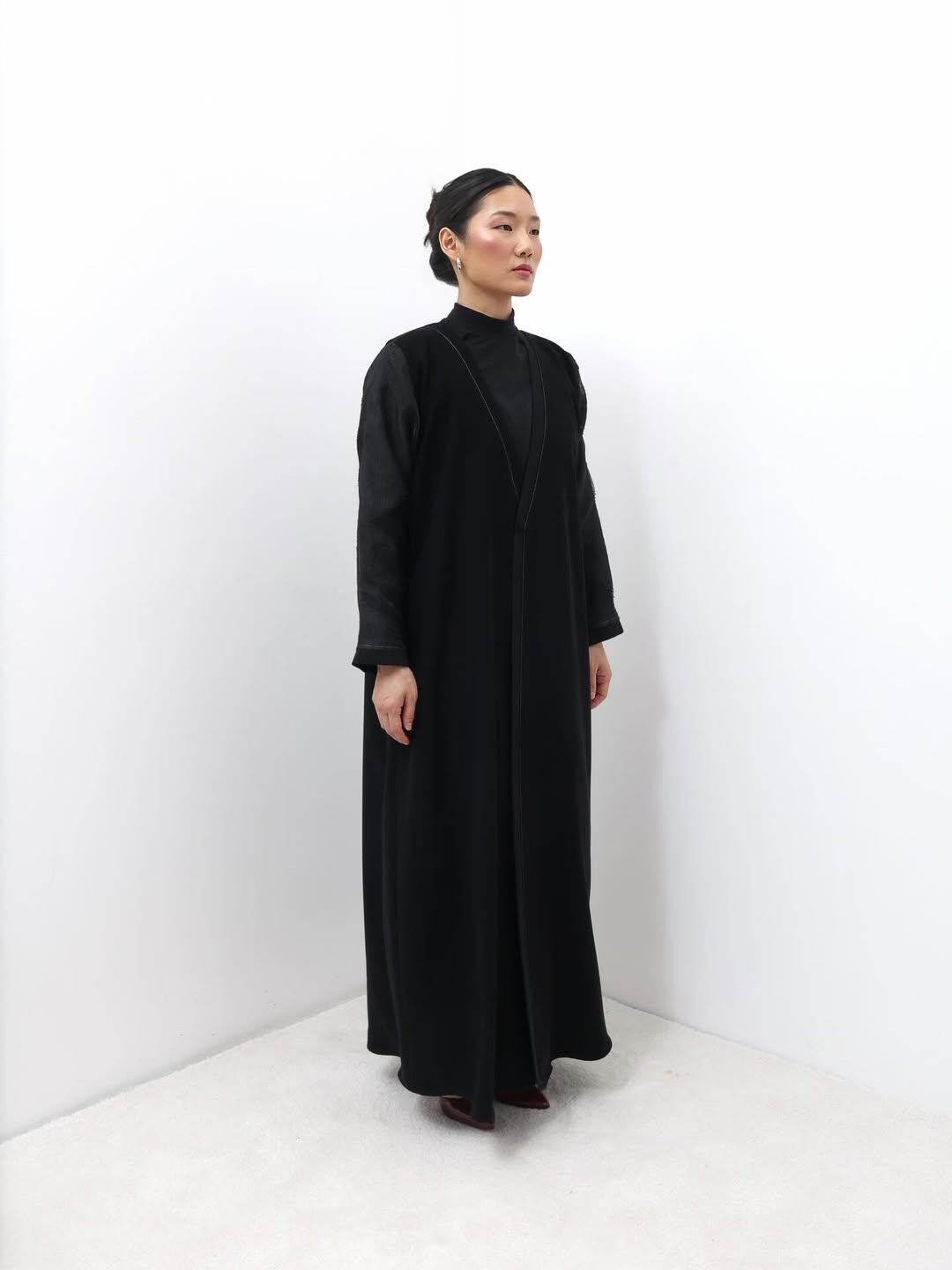 عبايه صممت بقماش خاص بعلامتنا التجاريه شديد السواد ، مع اضافه الاورقنزا وخبوط الزري لاعطاء العبايه اكثر جماليه 🪞