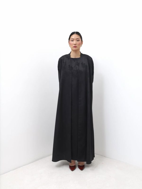 عبايه صممت بقماش الجاكارد الياباني ذو الملمس الناعم ، مع اضافه التفته وخيوط الزري ، تفاصيلها راقيه وفخمه صممت لتكون عنوان للاناقه لتمنحك حضور مميز في مناسباتك / تتوفر باللون الاسود فقط ، كميتها محدوده 🤍🪞